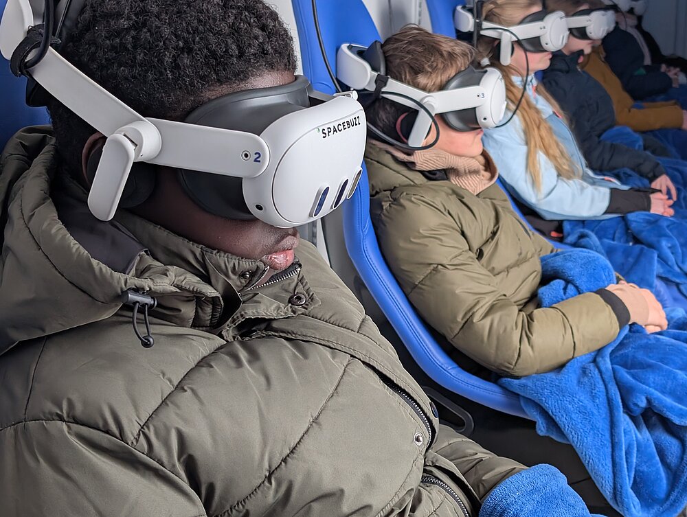 Mit dem SPACEBUZZ ONE der Deutschen Raumfahrt Agentur wird ein atemberaubender Flug ins Weltall unternommen! Schülerinnen und Schüler durchlaufen im Pre-Flight Programm ein spielerisches Astronautentraining und lernen etwas über das Sonnensystem, Satelliten und die Internationale Raumstation ISS. Im Post-Flight Programm lernen die Kinder die Erde zu verstehen und zu schützen und werden angeregt ein nachhaltiges Projekt an ihrer Schule umzusetzen.